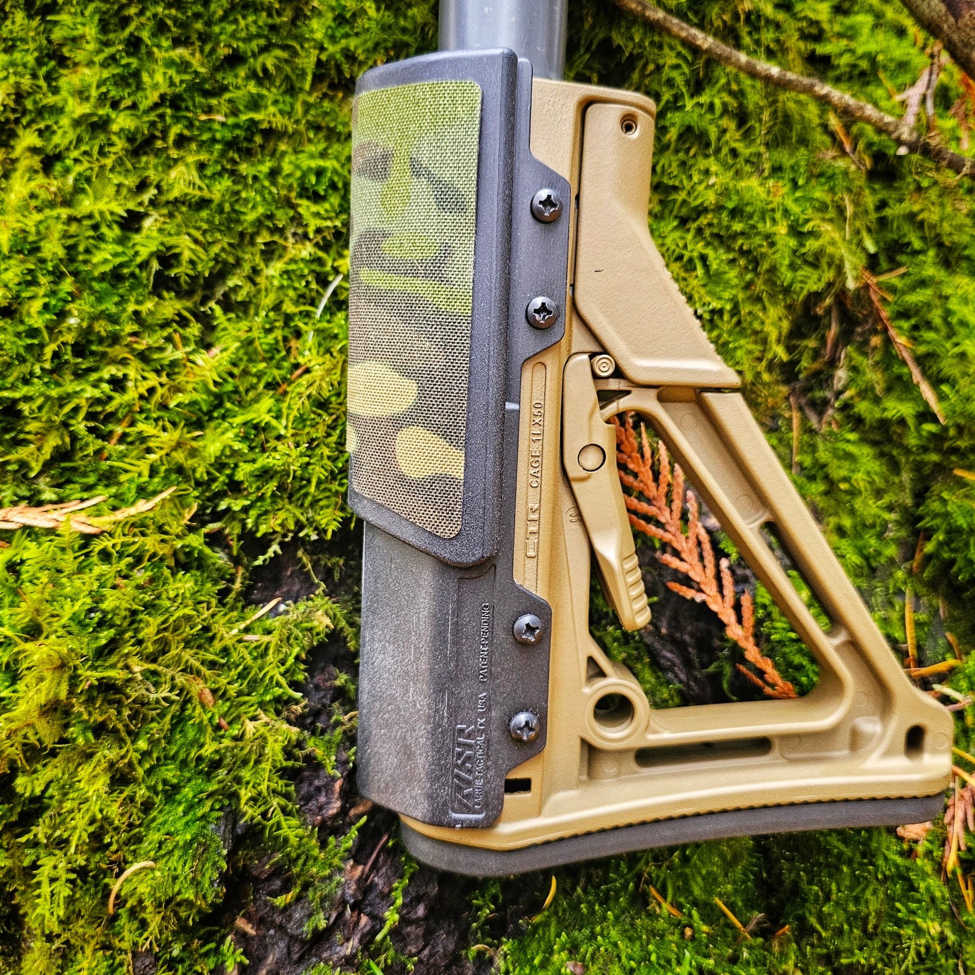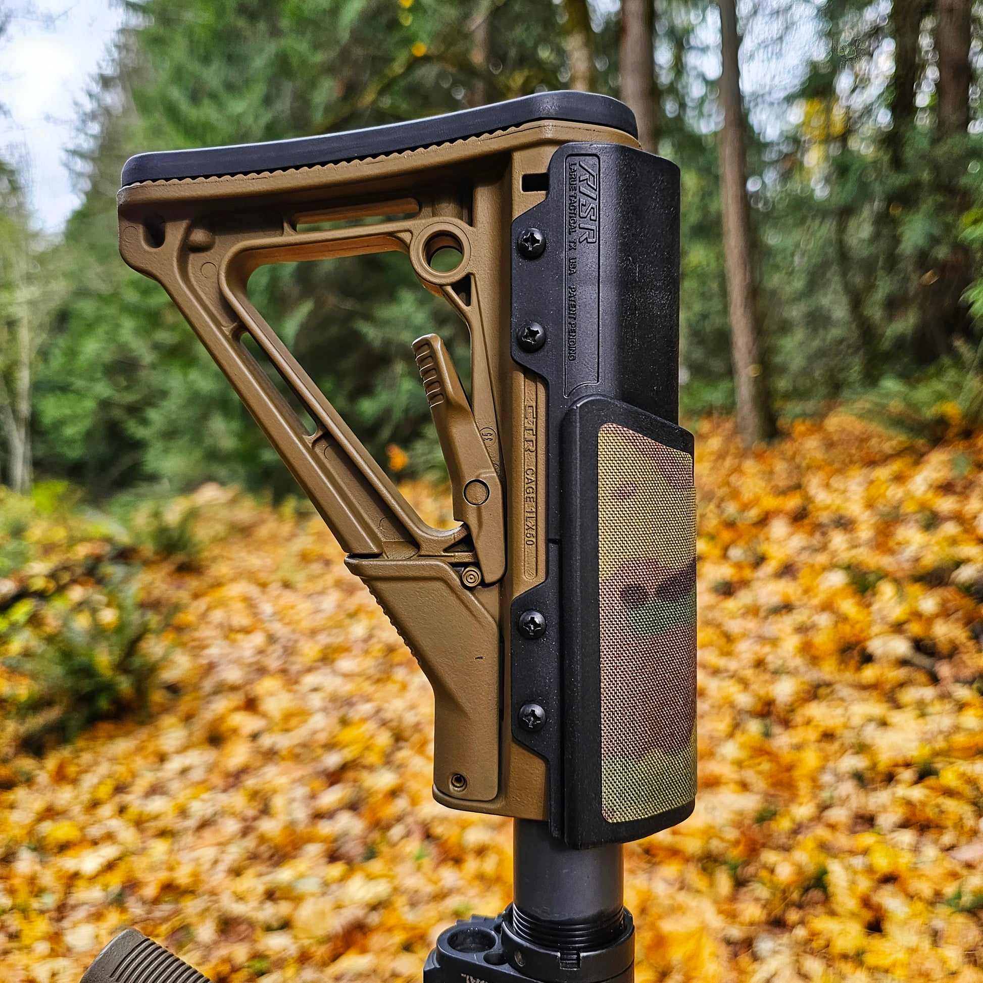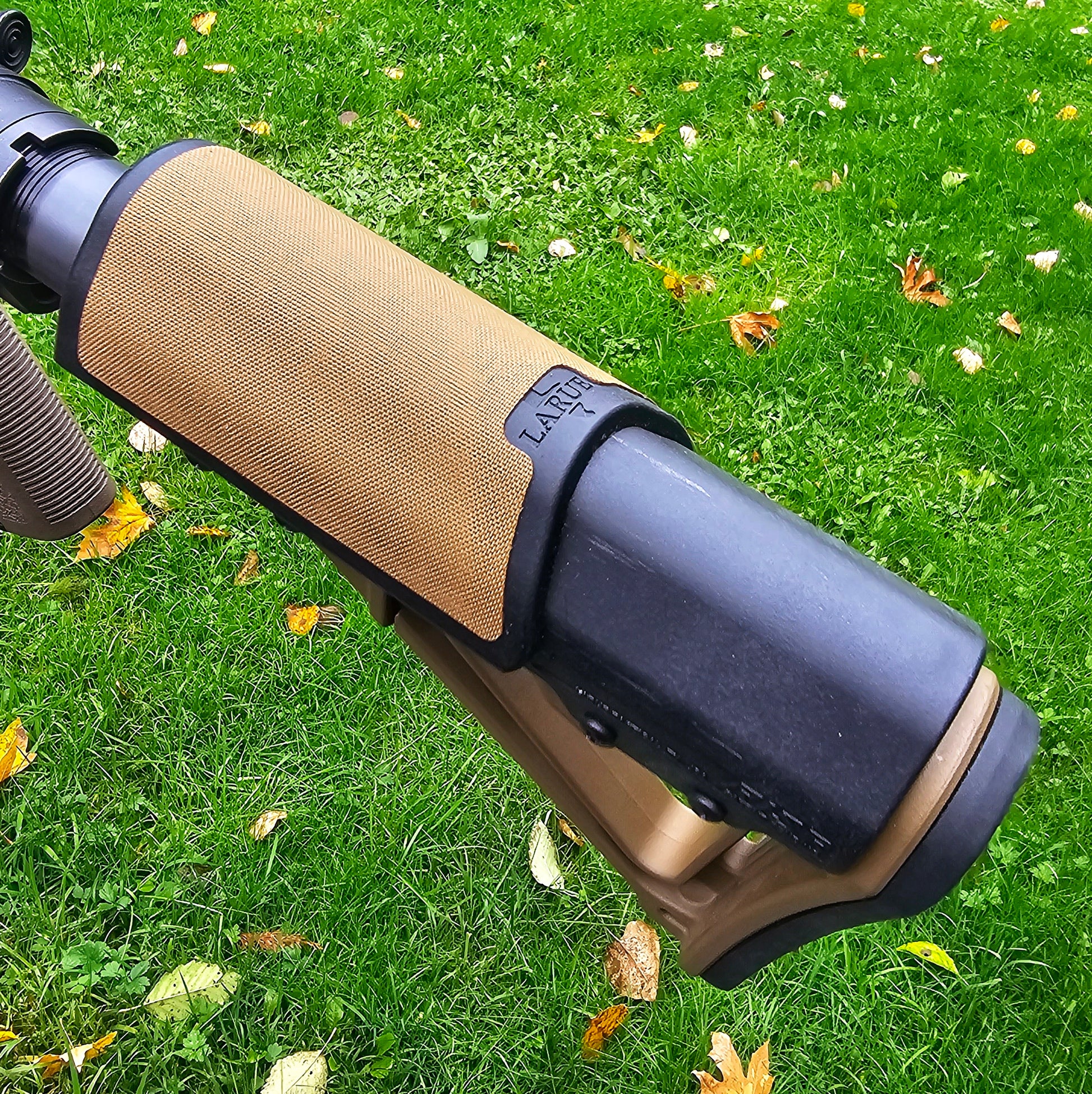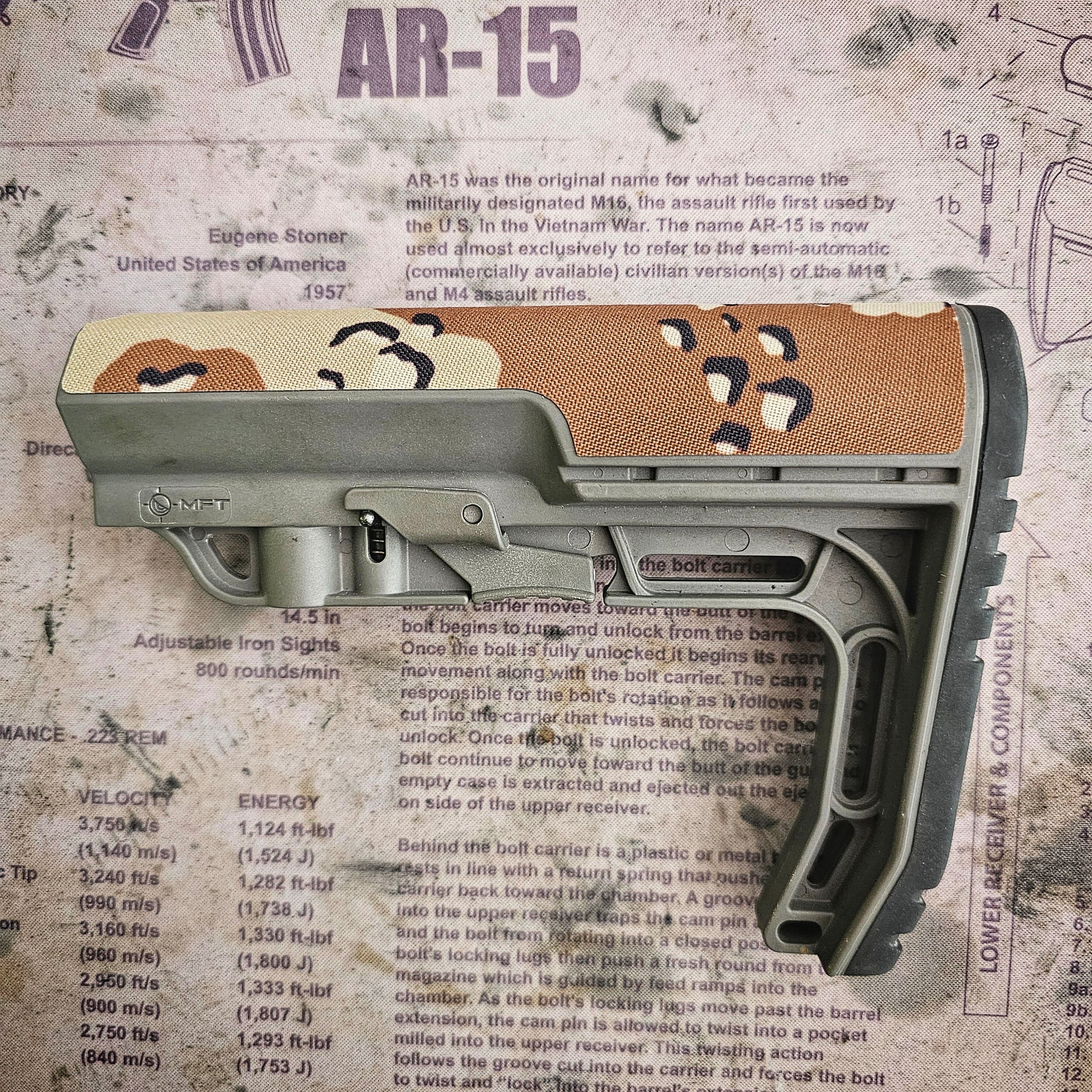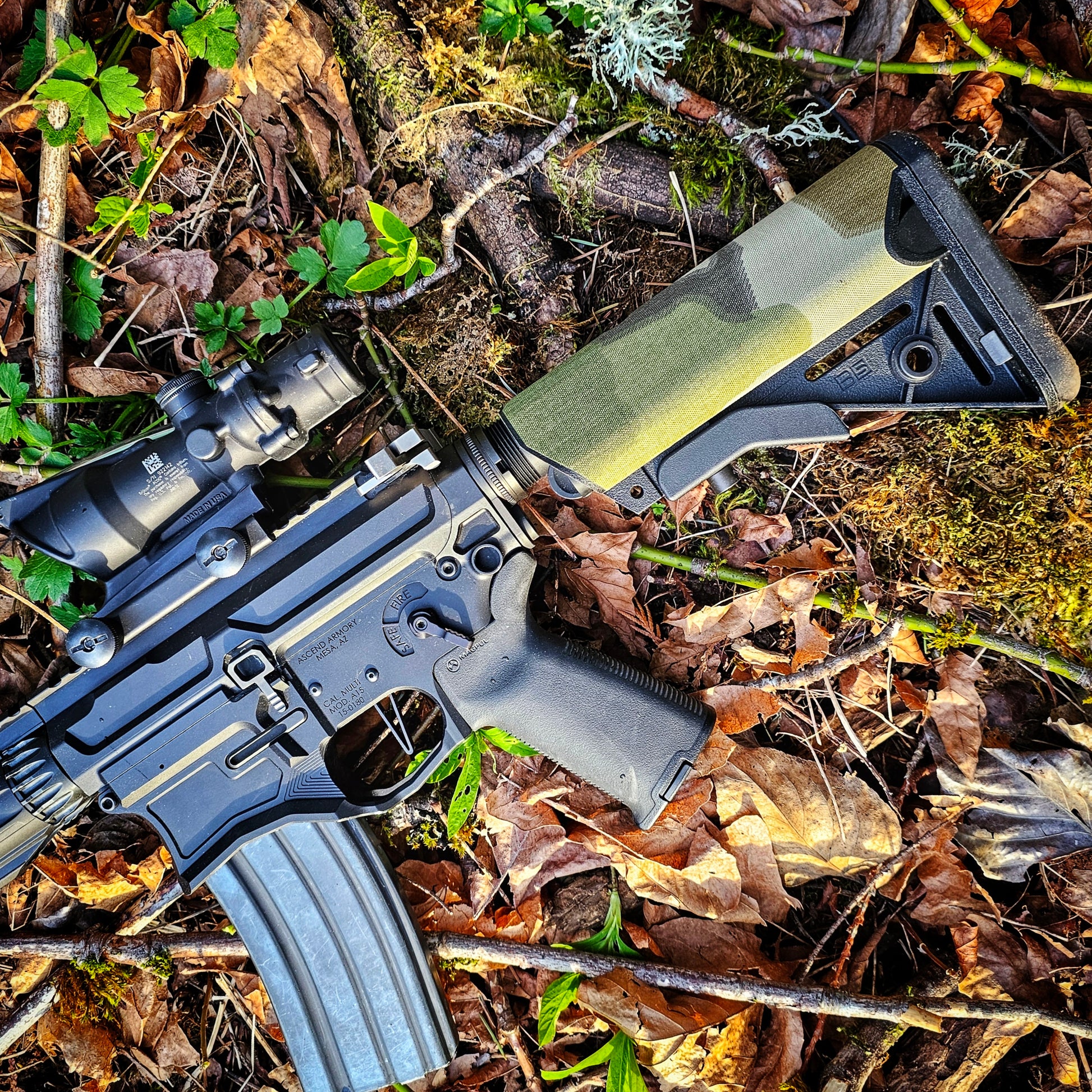 These are both stylish, and high quality. The cheek rests are made from 500D Cordura for maximum durability. Being both water and UV resistant, these are made to last. We laminate the Cordura fabric of your choice to a layer of high strength 3M adhesive to hold it in place. From there, we laser cut them to fit perfectly.